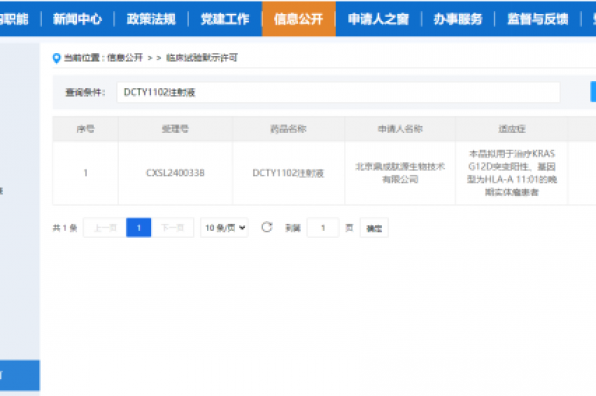 2024年8月8日,據國家藥品監督管理局藥品審評中心(CDE)官網顯示,北京鼎成肽源生物技術有限公司(以下簡稱“鼎成肽源”)申請的“DCTY1102注射液”已獲得臨床試驗默示許可,該產品注冊分類為生物藥1類,用于晚期胰...