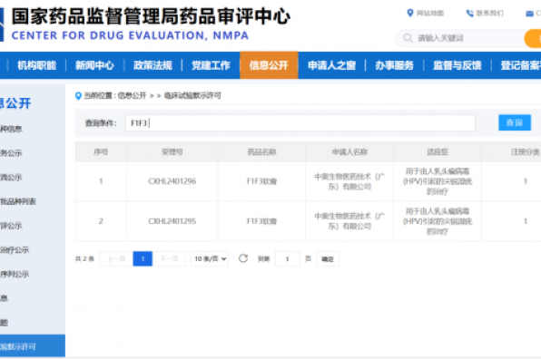 近期,據(jù)國家藥品監(jiān)督管理局藥品審評中心(CDE)官網(wǎng)顯示,中奧生物醫(yī)藥技術(shù)(廣東)有限公司申請的“F1F3軟膏”已獲得臨床試驗(yàn)?zāi)驹S可,該產(chǎn)品注冊分類為化藥1類,用于由人乳頭瘤病毒(HPV)引起的尖銳濕疣的治療。