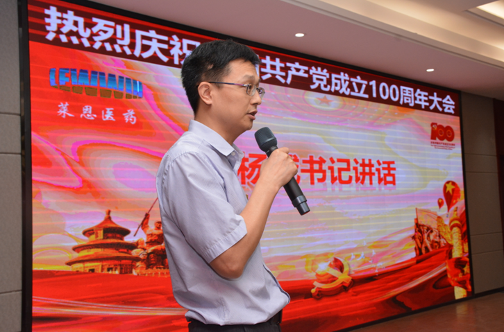 回顧萊恩醫(yī)藥的發(fā)展歷程,楊威書記指出,萊恩醫(yī)藥不斷前行壯大,得到了黨和政府的關(guān)心和支持,我們首先要感恩黨、感恩政府,同時也離不開每一位員工的艱苦奮斗與努力付出,并對大家表示感謝。他指出,當(dāng)前公司處在一個新的歷史起點,作為新時代的年輕人,希望大家傳承老一輩革命家的精神,不懈奮斗,懂得付出與奉獻(xiàn),不斷提高自身科研和技術(shù)能力,勇于擔(dān)當(dāng)時代責(zé)任、勇于砥礪奮斗,為祖國的生物醫(yī)藥事業(yè)貢獻(xiàn)我們最大的力量!