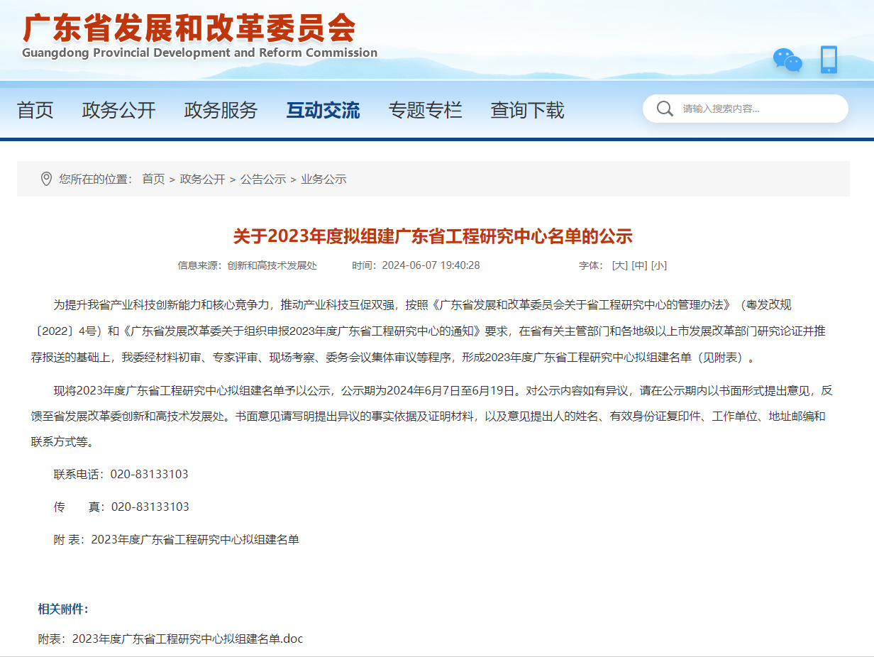 日前,廣東省發(fā)展改革委發(fā)布了2023年度廣東省工程研究中心擬組建名單,其中,