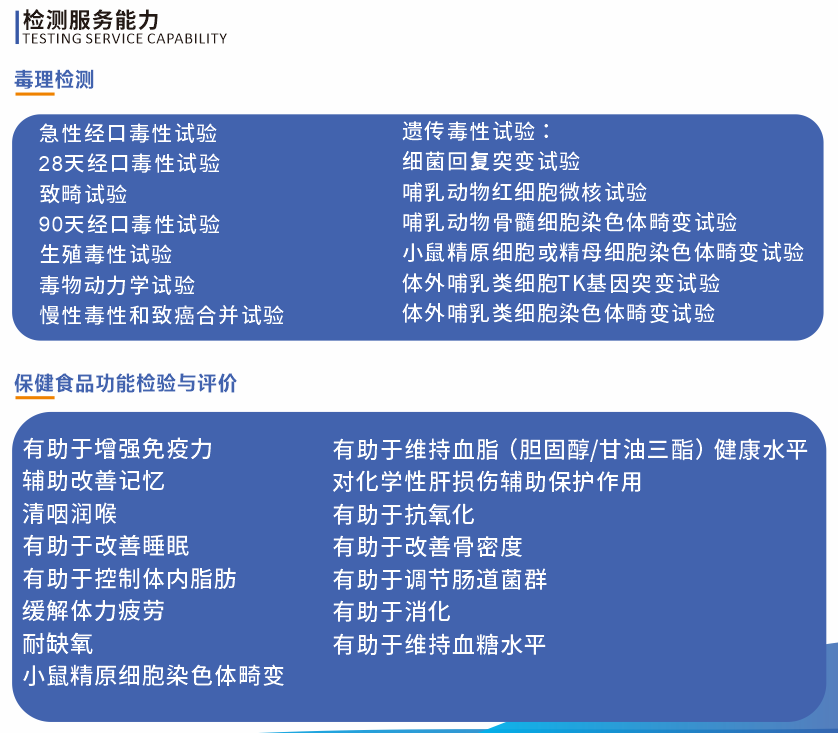 (依據(jù)食品安全國家標(biāo)準(zhǔn)GB15193系列標(biāo)準(zhǔn)進(jìn)行毒理學(xué)測評服務(wù)、依據(jù)保健食品功能檢驗與評價方法(2023年版)(市場監(jiān)督總局 國家衛(wèi)生健康委 國家中醫(yī)藥局〔2023〕38號等方法進(jìn)行功能檢驗與評價服務(wù))