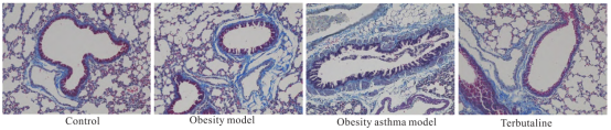 (2)造模:肥胖哮喘模型組和硫酸特布他林組通過腹腔注射10 mg·L