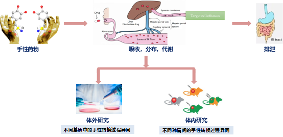 對于手性化合物的藥代動力學研究,可先進行體外轉化的研究,盡可能多地了解化合物在各種生物基質和環境下的轉換狀態,再評估其在體內的藥代和轉換特性。如果沒有先行的體外實驗的研究,在手性化合物的初步藥代動力學動物體內實驗中,也可以采用手性的方法對樣品進行各時間點的監測,從而直接了解化合物的轉換和代謝特性。