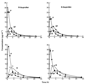 [2]。布洛芬(ibuprofen)在關節炎病人腔膜液中,活性體S-型的濃度總高于R-型