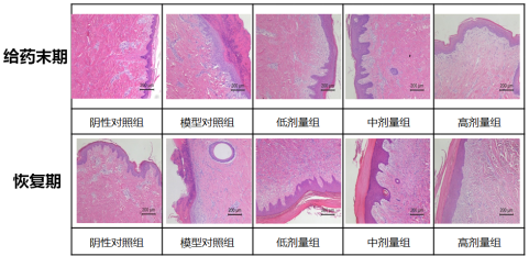 日光性皮炎模型:于豚鼠背部取約6cm×3cm面積區域以6%硫化鈉溶液進行脫毛備皮,使用光療儀(308nm)以10J/cm