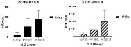 2,相當于臨床給藥的0.5、1、2倍)對燒傷模型小型豬(淺Ⅱ度、深Ⅱ度燒傷均為約5%體表面積,總燒傷約為10%體表面積)連續12周重復經皮給藥,各項指標均未見出現與受試物相關的具有毒性學意義的改變。NOALE大于2mm×2次/天(給藥面積約為10%體表面積),相當于臨床給藥的2倍。血漿中受試物的暴露量極低,末次給藥后在給藥皮膚處各劑量組均能測到一定量的藥物濃度,且各劑量組濃度均與給藥劑量呈良好的線性關系,在皮膚中的暴露量均無蓄積。除上述情況外,臨床觀察及病理學檢查均可見模型動物造模創傷部位出現明顯的淺Ⅱ度、深Ⅱ度燒傷特征,而受試物對淺Ⅱ度、深Ⅱ度燒傷皮膚具有較好的愈合修復作用,可降低深Ⅱ度燒傷后皮膚出現瘢痕或瘢痕收縮、色素沉著等變化。