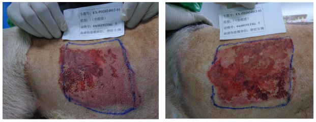 動物選擇的理由:小型豬皮膚組織結構如體表毛發的疏密、表皮厚薄、皮下脂肪層、表皮形態學等與人類很相似。皮膚燒傷后的體液和代謝變化等與人也非常相似,是進行各種皮膚創傷動物模型制備的理想選擇。