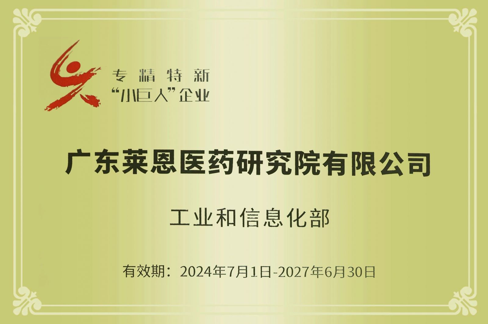 (1)萊恩醫藥憑借其卓越的創新能力和穩健的發展態勢成功通過專精特新“小巨人”企業復核,蟬聯國家專精特新“小巨人”企業稱號。