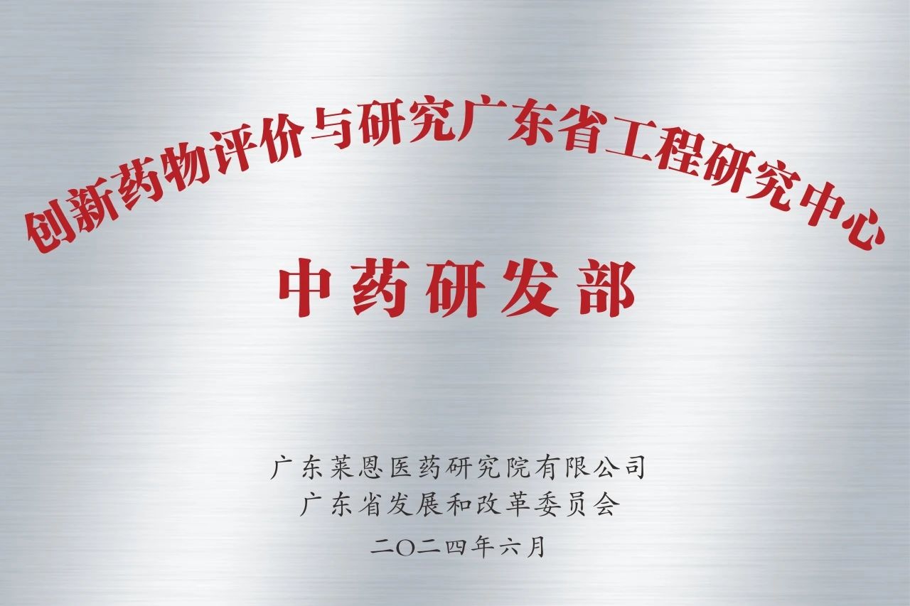 3.萊恩醫藥成功組建創新藥物評價與研究廣東省工程研究中心中藥研發部。
