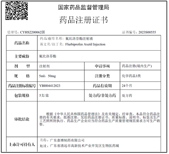 近日,廣東嘉博制藥有限公司氟比洛芬酯注射液獲得國家藥品監(jiān)督管理局(NMPA)注冊批準(zhǔn)(國藥準(zhǔn)字H20233461),可用于術(shù)后及癌癥的鎮(zhèn)痛。該品種按化學(xué)藥品3類申報(bào),獲批后視同通過一致性評(píng)價(jià)。氟比洛芬酯注射液的獲批上市,意味著嘉博公司完全掌握微球這一復(fù)雜劑型的生產(chǎn)技術(shù),進(jìn)一步豐富了嘉博制藥的產(chǎn)品線,標(biāo)志著嘉博制藥在圍手術(shù)期的專業(yè)化發(fā)展道路上又邁出了堅(jiān)實(shí)的一步。