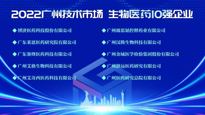 2023年4月25日,2022廣州技術市場年度榜單發布會在越秀國際會議中心舉辦。會議發布了“2022廣州技術市場年度榜單”,萊恩醫藥榮獲“2022廣州技術市場生物醫藥領域10強企業”稱號,并排名第二,為廣州生物醫藥行業科技創新發展做出了重要貢獻。