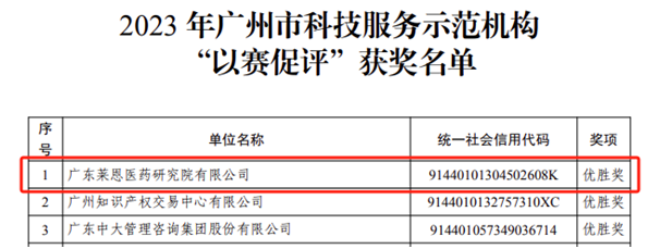 近日,廣州市科學技術局公布第十二屆中國創新創業大賽科技創新服務專業賽、2023年廣州市科技服務示范機構“以賽促評”獲獎名單。在激烈的競爭中,萊恩醫藥喜獲2023年廣州市科技服務示范機構“以賽促評”賽事的桂冠。連續兩年的榮譽不僅是對萊恩醫藥卓越實力的認可,也標志著其在高新技術領域的不懈努力和創新。