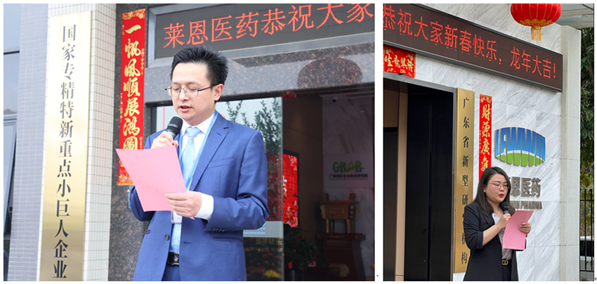 楊威總經理、郭健敏副總經理分別在萊恩醫藥A棟和B棟發表新年開工致辭。他們表示,新的一年,我們將面臨更加嚴峻的挑戰和更加廣闊的機遇。世界之變、時代之變、市場之變,正以前所未有的方式展開;我們必須準確識變、科學應變、主動求變,從容應答,順勢而為!他們同時傳達了省、市高質量發展大會精神,聚焦產業科技話創新、謀未來,號召全體員工提振精神,奮楫揚帆,挺立在科技浪潮的潮頭,緊跟國際形勢與行業發展,不斷研究引進消化吸收新理念、新技術、新方法,推動產業與科技互促雙強,為祖國GLP和高端藥械非臨床評價研究事業貢獻我們最大力量,為生物醫藥產業鏈研發優質藥物造福人民健康全力奮斗。