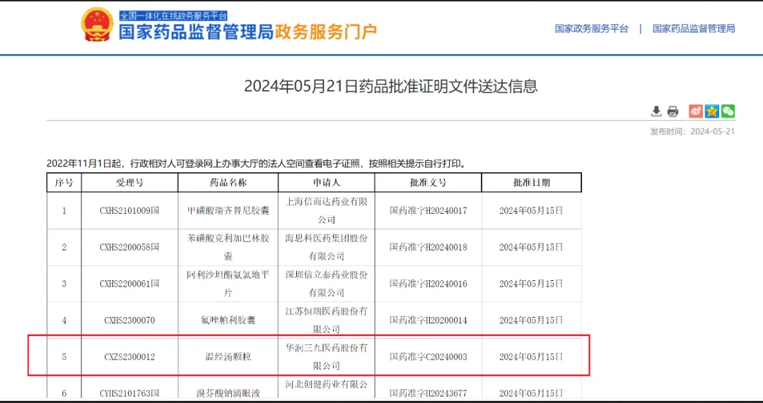 近日,華潤三九醫藥股份有限公司的中藥3.1類新藥溫經湯顆粒獲得國家藥監局的上市批準。