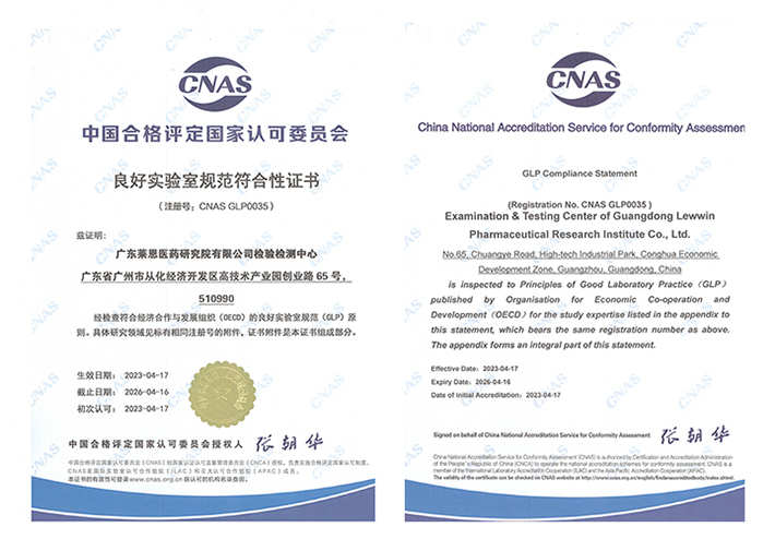 廣東萊恩醫藥研究院有限公司(以下簡稱“萊恩醫藥”)秉承“發現藥物是偶然,做優質藥物是必然”的宗旨,成功打造了符合國際國內GLP規范、國際AAALAC要求、FDA標準和ICH要求的國際化創新藥物評價與研究平臺。目前是民營機構第一家、華南首家(目前唯一一家)擁有NMPA藥物十項全項GLP認證資質的研究機構,并具有醫療器械、化妝品、食品及食品相關產品、藥品、消毒產品及消毒效果、化學品CMA檢驗檢測資質,同時具有醫療器械評測、化學品安全檢測(符合OECD GLP要求)和分析化學、臨床化學測試CNCA GLP 認證資質,CNAS實驗室認可,已通過OECD GLP認證,還在多種屬動物、多業務范圍獲國際AAALAC完全認可,藥物非臨床評價研究數據被美國、歐盟等多個發達國家地區認可,支持全球申報,可為醫藥研發機構、企業以及高校提供概念驗證研究、成藥性評價、藥理藥效研究、藥物安全性評價、臨床前及臨床藥代毒代研究、藥物體內命運研究、生物分析、體內外生物安全實驗、動物醫學檢驗檢測、保健食品、化妝品、化學品及高端醫療器械等領域的毒理測試、國際注冊申報等支撐生物醫藥產品研發的全程式藥物非臨床評價研究技術服務。